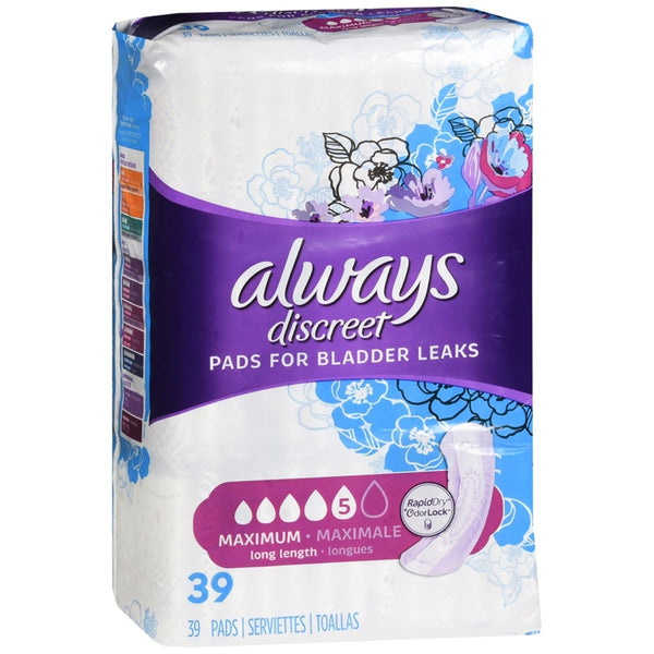 Always Discreet - Pads for Bladder Leaks Long Length Maximum - 39 EA