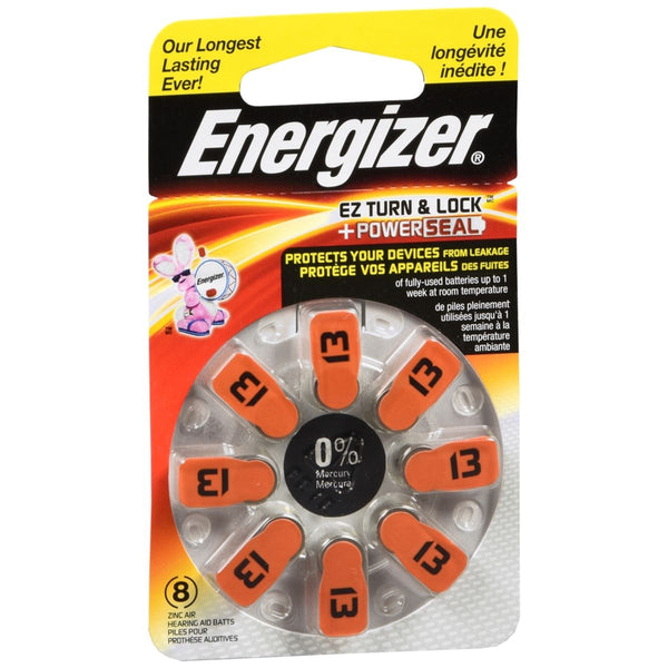 Energizer - EZ Turn & Lock Power Seal Hearing Aid Batteries Size 13 - 8 EA
