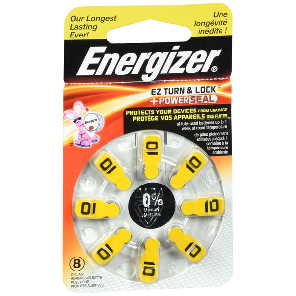 Energizer - EZ Turn & Lock + Power Seal Zinc Air Hearing Aid Batteries Size 10 - 8 EA