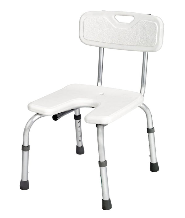 MBA-206 Features: -Shower Bench.-Frame material: Aluminum.-Blown molded seat.-Drainage holes reduce slipping.-Adjustable height legs.-U shaped.-Frame is lightweight, durable and corrosion proof.-Weight capacity: 300 lbs. Assembly Instructions: -Assembly required. Dimensions: -Overall dimensions: 34.25" H x 19" W x 15.5" D. Aluminum frame is lightweight, durable and corrosion proof. Blow molded seat provides comfort and strength. Drainage holes reduce slipping. Adjustable height legs