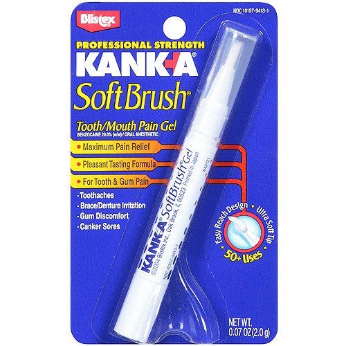 Benzocaine 20.0% (W/W) Oral Anesthetic. Maximum pain relief. Pleasant tasting formula. For tooth & gum pain. Toothaches. Denture/Brace irritation. Gum discomfort. Canker sores. Easy reach design. Ultra soft tip. 50+ users.