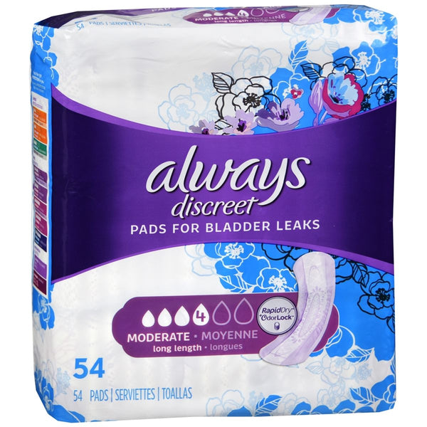 Always Discreet - Pads Long Length Moderate Absorbency - 54 EA