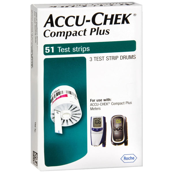 For testing glucose in fresh capillary whole blood. For use with: Accu-Chek Compact Plus meters. For use with: Accu-Chek Compact Plus clear control solution. 3 test strip drums.