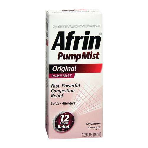| Directions | Adults and children 6 to under 12 years of age (with adult supervision): 2 or 3 sprays in each nostril not more often than every 10 to 12 hours. Do not exceed 2 doses in any 24 hour period. Children under 6 years of age: ask a doctor. Before using the first time, remove the protective cap from the tip and prime metered pump by depressing pump firmly several times. To spray, hold bottle with thumb at base and nozzle between first and second fingers. Without tilting head, insert nozzle into nostril. Fully depress rim with a firm, even stroke and sniff deeply. Wipe nozzle clean after use. Store between 20 to 25 degrees C (68 to 77 degrees F). |