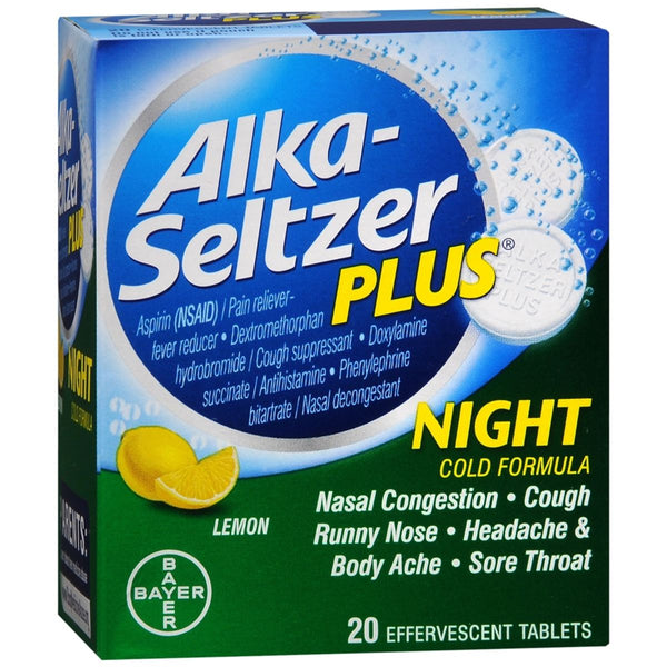 ALKA-SELTZER PLUS - Alka-Seltzer Plus Night Cold Formula Effervescent Tablets Lemon - 20 TB