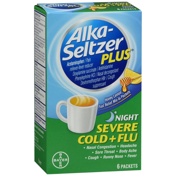 ALKA-SELTZER PLUS - Alka-Seltzer Plus Night Severe Cold + Flu Powder Packets Honey Lemon - 6 EA