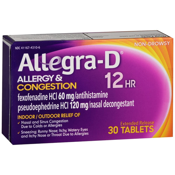 Allegra - D 12 Hour Allergy & Congestion Extended Release Tablets - 30 TB