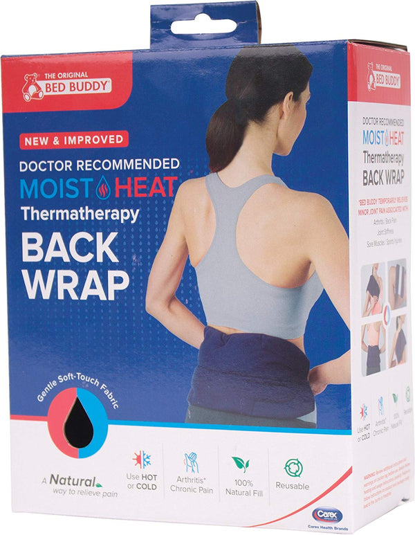 - HOT OR COLD THERAPY: The Bed Buddy Back Wrap can be placed in the microwave for heat therapy, or pop it into a bag in the freezer overnight for soothing cold therapy. Relieve back, shoulder, neck or knee pain with hot or cold therapy from Bed Buddy Wraps.