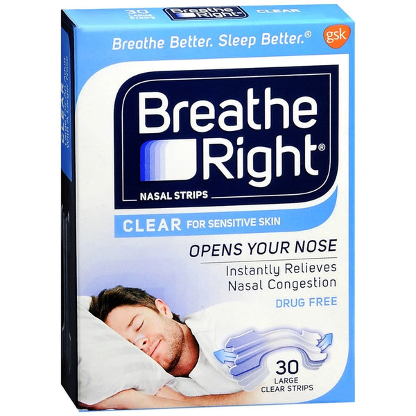 Breathe Right - Nasal Strips Clear for Sensitive Skin Large - 30 EA