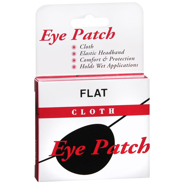 Cloth eye patch with elastic headband. Comfort and protection. Holds wet applications. Flat.