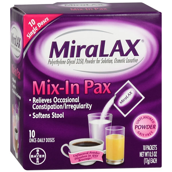 Miralax - MiraLAX Mix-In Pax Powder Packets Unflavored - 10 EA