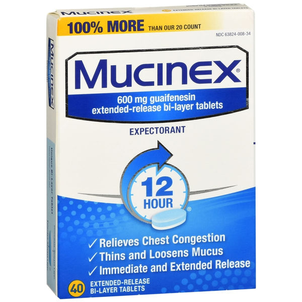 Helps loosen phlegm (mucus) and thin bronchial secretions to rid the bronchial passageways of bothersome mucus and make coughs more productive. Relieves chest congestion. 12 hour relief. Bi-layer tablets.