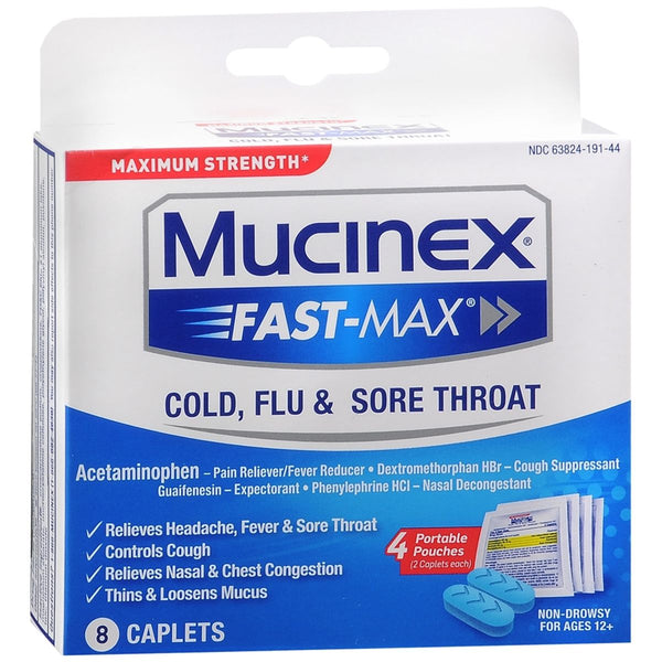 Mucinex - Maximum Strength Fast Max Cold, Flu & Sore Throat Caplets 8 CP