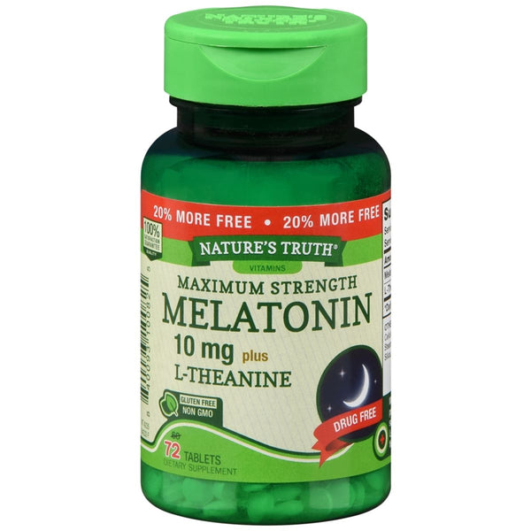 Nature's Truth - Melatonin 10 mg plus L-Theanine Tablets Maximum Strength - 72 TB