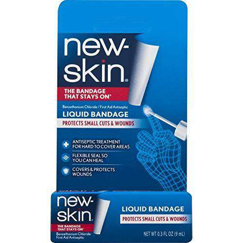- New-Skin Liquid Bandage is an antiseptic flexible cut-and-scrape protection that so you can get back to the action at hand. It dries rapidly to form a tough protective cover that's waterproof and keeps out dirt and germs while letting skin breathe.