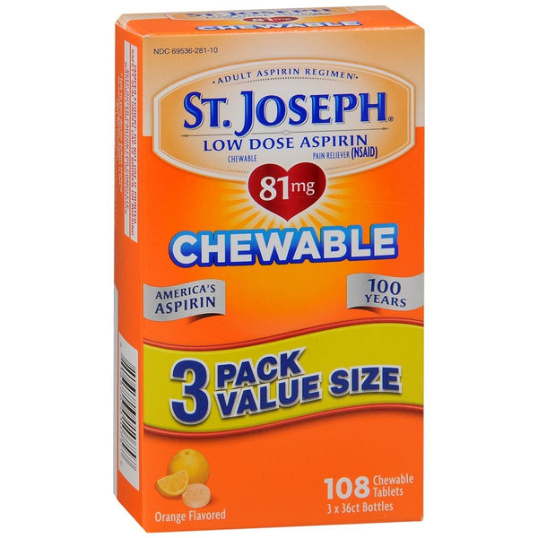 St. Joseph - Low Dose Aspirin 81 mg Chewable Tablets Orange Flavored - 108 TB