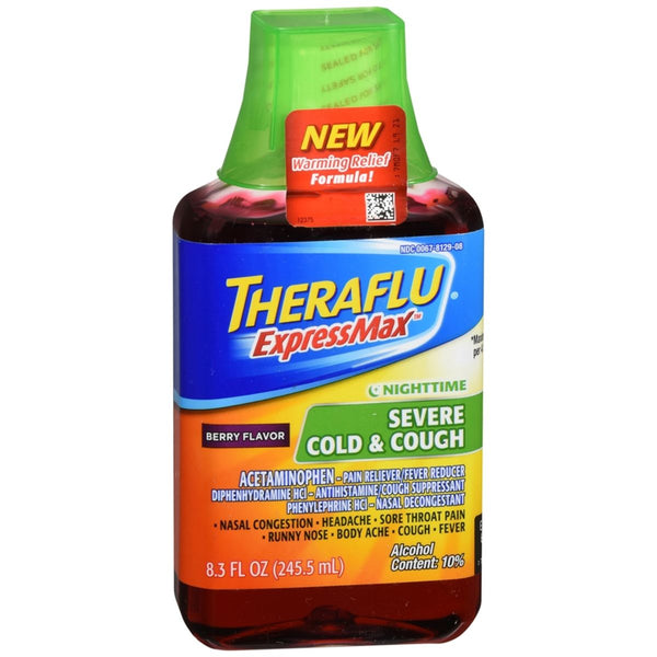 Theraflu - ExpressMax Nighttime Severe Cold & Cough Liquid Berry Flavor - 8.3 OZ
