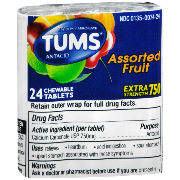 TUMS - Extra Strength 750 Antacid with Calcium Chewable Tablets Assorted Fruit - 24 TB