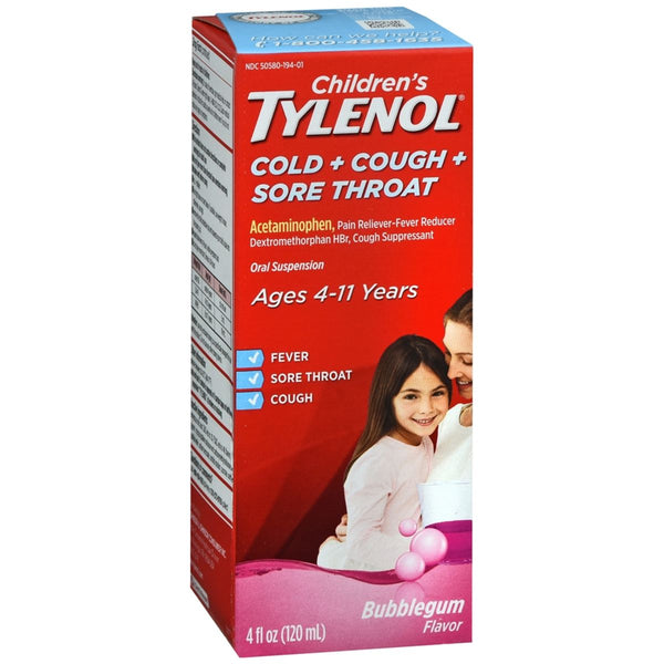 Tylenol - Children's Cold + Cough + Sore Throat Oral Suspension Bubble Gum - 4 OZ