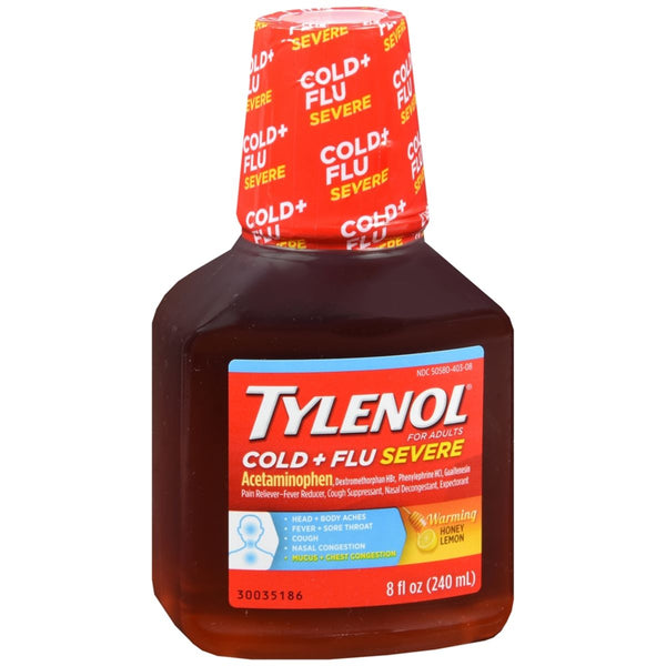 Tylenol - Cold + Flu Severe Liquid For Adults Warming Liquid Honey Lemon - 8 OZ