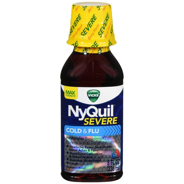 Vicks - NyQuil Severe Cold & Flu Nighttime Liquid Berry Flavor - 8 OZ