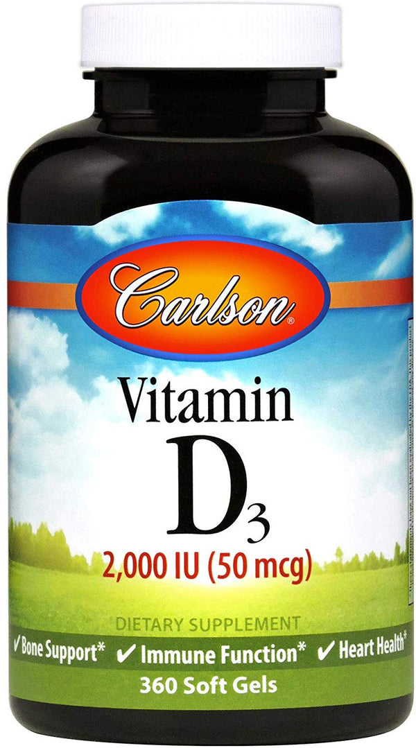 Carlson - Vitamin D3 2,000 IU (50 mcg), Cholecalciferol, Bone & Immune Health, 360 Soft Gels