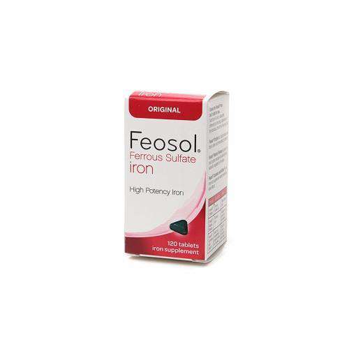 Feosol-« Original contains ferrous sulfate, a form of iron widely recommended by doctors.-á When your doctor suggests an iron supplement for iron deficiency anemia, ferrous sulfate is a time tested form of iron.-á Each Feosol-« Original tablet contains 65mg of elemental iron, equivalent to 325mg of ferrous sulfate which provides 360% of Daily Value.