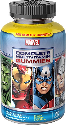 Your kids will feel like they can save the world when they take MultiVitamin Gummies in fun Avengers shapes! These delicious gummies contain over 10 vitamins and minerals, including Vitamin A for eye health, B Vitamins for energy metabolism and Vitamins C & D for immune function.* MultiVitamin Gummies are a fantastic way to give children a great start to their day!. The picture is for illustrated purposes, we should have the latest version of the product in stock.