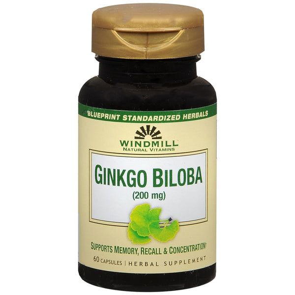 Windmill - Natural Vitamins Ginkgo Biloba 200mg Herbal Supplement Capsules - 60 CP