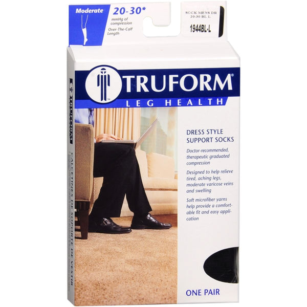 Truform - Dress Style Support Socks 20-30 mmHg Over-the-Calf Men's Black Large 1944BL-L - 1 PR