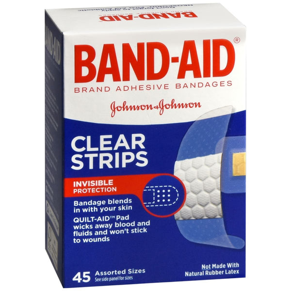 Band-Aid - Clear Strips Adhesive Bandages Assorted Sizes - 45 EA
