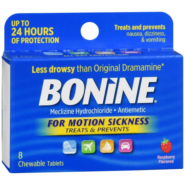 Bonine - Motion Sickness Chewable Tablets Raspberry Flavored - 8 TB