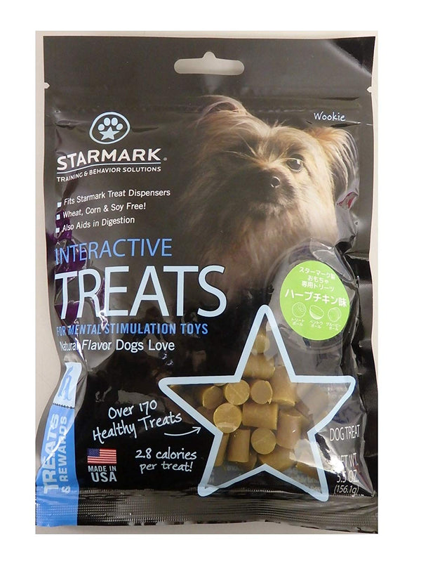 Turn treat time into training time with the Starmark Interactive Dog Treats. Each tasty bite fits perfectly inside most treat dispensing and puzzle toys like the Starmark interactive toys. Low calorie, chewy, and perfectly bite sized, they’re a great training tool to keep your pal active and make him work for his treat. Your dog will look forward to training thanks to the delicious flavor. They’re made with highly-digestible ingredients and flavored naturally with fennel, vanilla, and peppermint. Plus, they are proudly made in the USA with never any wheat, corn, soy, or artificial flavors.