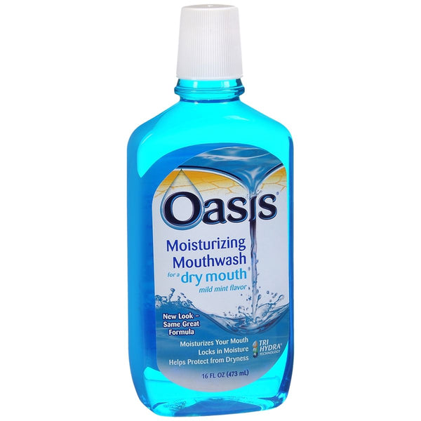 Oasis moisturizing mouthwash offers the benefits of a regular mouthwash in a gentle alcohol-free formulation. Rather than containing alcohol that can leave your mouth dry, this mouthwash moisturizes your mouth and helps protect it from drying out.