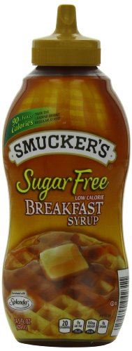 This Smucker's Breakfast Syrup is a sugar-free and low-calorie choice. The Smucker's Sugar Free Syrup, 14.5 oz, has only 20 calories per serving, which is significantly less than other leading brands. This Smucker's Syrup, does not contain sugar, so it is suitable for those who are diabetic or on a low-sugar diet.