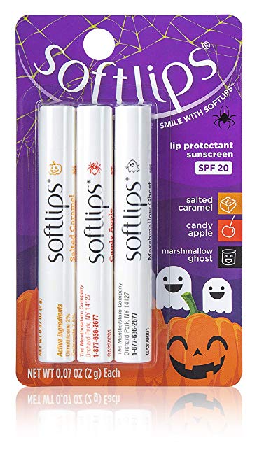 Softlips - Limited Edition Halloween Lip Balm Pack - Salted Caramel, Candy Apple and Marshmallow Ghost