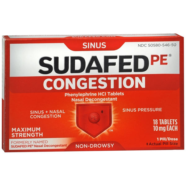 Temporarily relieves sinus congestion and pressure. Temporarily relieves nasal congestion due to the common cold, hay fever or other upper respiratory allergies. Maximum strength. Non-drowsy. Does not contain pseudoephedrine.