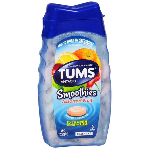 TUMS - Smoothies Extra Strength 750 Antacid Chewable Tablets Assorted Fruit - 60 TB