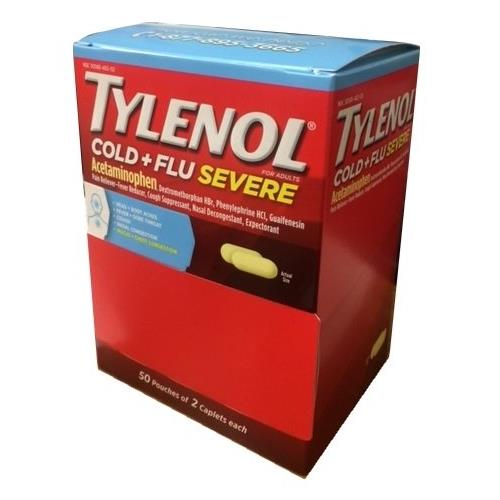 Tylenol Cold Flu Severe 50 Caplets in Each pack, Dispenser Pouch Box