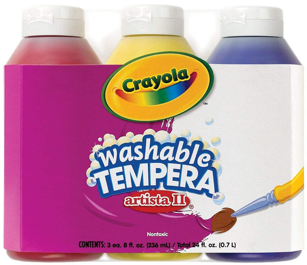 Crayola Artista II Washable Tempera Primary Paint has a washable formula that provides easy, no-fuss cleanup from skin & most washable clothing
