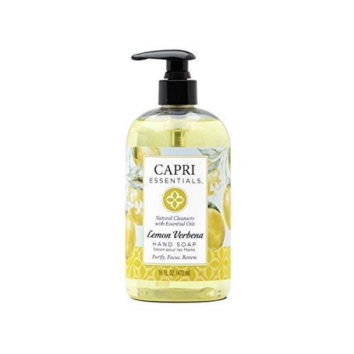 Color:Lemon VerbenaWash away dirt on your hands and enjoy the benefits of aromatherapy with Lemon Verbena Natural Hand Soap by Capri Essentials!Featuring a pleasing, soft fragrance that is long-lasting, this Natural Hand Soap has a lingering aroma that is not harsh or overpowering to the senses. It is great to use in bathrooms, kitchens, and offices.This 16 oz. Natural Hand Soap contains essential oils for aromatherapy-based cleaning and a more balanced home environment. Remove dirt and grime from your hands while filling your home with the comforting and soothing aroma of lemon verbena.Containing only healthy and natural ingredients, this Lemon Verbena Hand Soap is not harmful to use. It does not contain harsh chemicals or detergents and was not tested on animals. It has a special blend of lemon verbena, juniper, thyme, and chamomile essential oils along with other fragrances to create a calming and pacifying ambiance.Aromatherapy has the ability to lift your mood and create a more inviting home environment. Make hand washing less of a chore and more of an experience with the lemon verbena Natural Hand Soap by Capri Essentials!