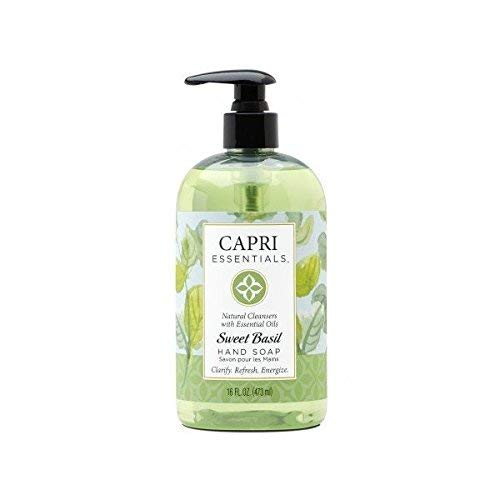 Color:Sweet BasilWash away dirt on your hands and enjoy the benefits of aromatherapy with Sweet Basil Natural Hand Soap by Capri Essentials!Featuring a pleasing, soft fragrance that is long-lasting, this Natural Hand Soap has a lingering aroma that is not harsh or overpowering to the senses. It is great to use in bathrooms, kitchens, and offices.This 16 oz. Natural Hand Soap contains essential oils for aromatherapy-based cleaning and a more balanced home environment. Remove dirt and grime from your hands while filling your home with the comforting and soothing aroma of sweet basil.Containing only healthy and natural ingredients, this Sweet Basil Hand Soap is not harmful to use. It does not contain harsh chemicals or detergents and was not tested on animals. It has a special blend of sweet basil, almond, eucalyptus, and peppermint essential oils along with other fragrances to create a refreshing and energizing ambiance.Aromatherapy has the ability to lift your mood and create a more inviting home environment. Make hand washing less of a chore and more of an experience with the Sweet Basil Natural Hand Soap by Capri Essentials!