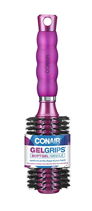 Conair - Hair Brush with Boar Bristle, Gel Grips, Round, Medium, Colors May Vary
