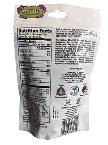 Cotton Mouth dry mouth lozenges are a delicious tasting special formulation that includes an all natural ingredient blend used to relieve dry mouth. Personal Care. Toothpaste-Whiteners-Mouthwash. mouthwashes. Cotton Mouth dry mouth lozenges are a delicious tasting special formulation that includes an all natural ingredient blend used to relieve dry mouth.