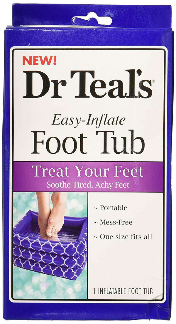 - Portable and Mess Free Size:2 PackDr.Teal's Easy-Inflate Foot Tub is perfect and convenient for soaking tired feet, softening skin and at-home pedicures. No matter the use, it is easy to inflate and carry so you don't spill water, providing a mess-free experience.