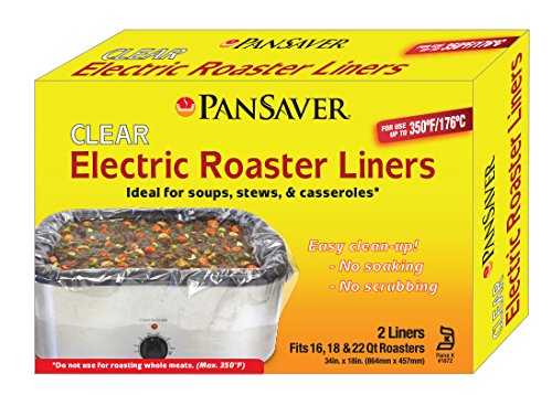 Oven safe (350ºF) PanSaver Electric Roaster Liners are Used in Food Preparation, Cooking and Holding, to Prevent Food From "Baking-on" and "Burning-on" to the Electric Roasters. PanSaver Electric Roaster Liners are Convenient, Time Saving Kitchen Aids Which Will Improve the Food You Serve As Well As Reduce Your Costs. Grease Goes in the Trash Not Down the Drain. Save Money on Cleaning Chemicals and Hot Water, No More Soaking and Scrubbing. Clean Up is Quick and Easy. No Change in Food Cooking Time or Food Flavor. The PanSaver Electric Roaster Liners are Made in the USA and Safe for Direct Food Contact at Elevated Temperatures. 2 Liners per box. Eliminates food-to-hot metal contact which prevents the moisture in the food from scalding-off. Patented contour-fit eliminates folds in the liner from trapping servings; food doesn't stick to the surface and there is virtually no waste. Since food cooked with pansaver never touches the pan the chance of surface contamination is eliminated. Pansaver is FDA certified, nsf approved, kof-k certified and produced in an iso-9001 environment. Important to carefully read directions. Failure to do so may result in liners melting. 2 liners per box. Eliminates food-to-hot metal contact which prevents the moisture in the food from scalding-off. Patented contour-fit eliminates folds in the liner from trapping servings; food doesn't stick to the surface and there is virtually no waste. Since food cooked with pansaver never touches the pan the chance of surface contamination is eliminated. Pansaver is FDA certified, nsf approved, kof-k certified and produced in an iso-9001 environment. Important to carefully read directions. Failure to do so may result in liners melting