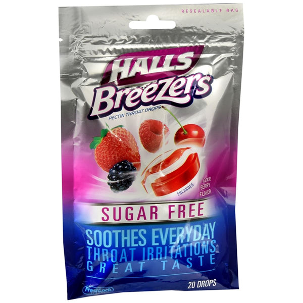 Halls - Breezers Pectin Throat Drops Sugar Free Cool Berry Flavor - 20 EA