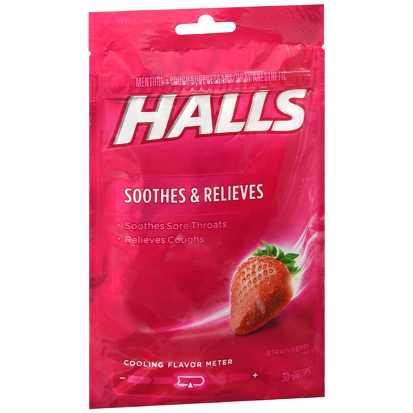 Halls - Menthol Cough Suppressant/Oral Anesthetic Drops Strawberry - 30 EA