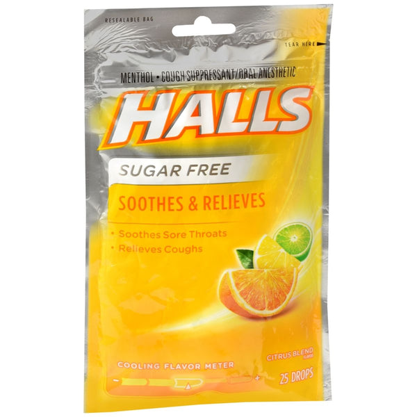 Halls - Sugar Free Menthol Cough Suppressant/Oral Anesthetic Drops Citrus Blend - 25 EA