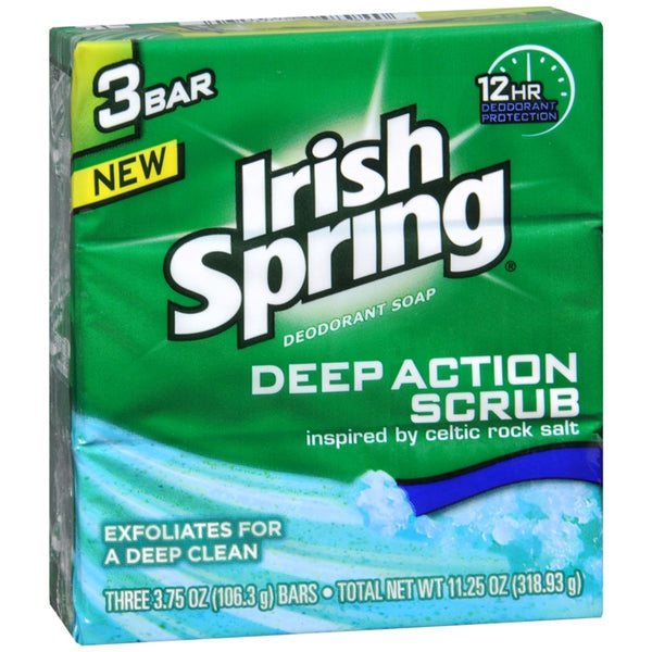 Irish Spring - Deodorant Soap Bars Deep Action Scrub - 11.25 OZ